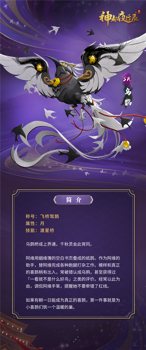 由一张轻如鸿毛的乌鹊书页折成的它 ,为七夕节增添浪漫的银汉妖灵爱情氛围。它将与你一起 ,迢迢降妖师们将与“月老” 、筑星